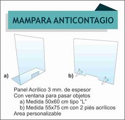 b) Medidas 55 x 75 cms. con 2 pies de acrílicos.